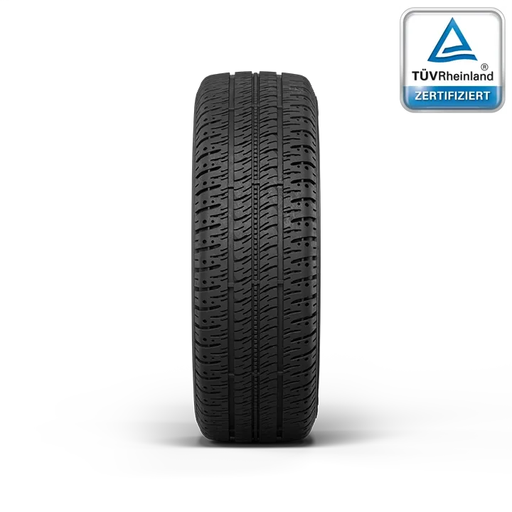Die robuste Karkasse sorgt für Sicherheit und kürzere Bremswege auch unter schwierigen Bedingungen. Das spezielle Profildesign ermöglicht eine gleichmäßige Lastverteilung und damit einen gleichmäßigen Abrieb. Dieses Design verlängert die Lebensdauer des Reifens und macht ihn zu einer langlebigen und zuverlässigen Wahl für den Dauereinsatz.